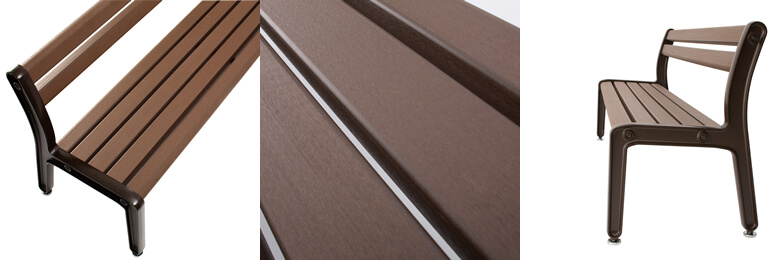 | 材質 | 脚部:アルミ鋳物にアクリル焼付塗装/座・背面:リサイクルウッド材(人工木)/補強材:スチールにアクリル焼付塗装 |